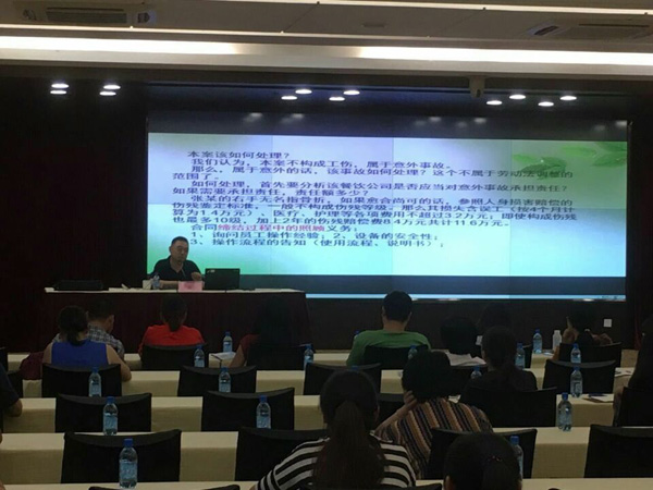 讲座现场 应杭州经济技术开发区人力资源协会的邀约,我司副总经理李双全7月15日下午在城建文化馆做了“劳资纠纷处理技巧”讲座,此次培训主题切中不少成员企业需求,企业的参与热情很高,共吸引40多家企业的相关负责人到场,甚至有不少外地的企业和同行参加。