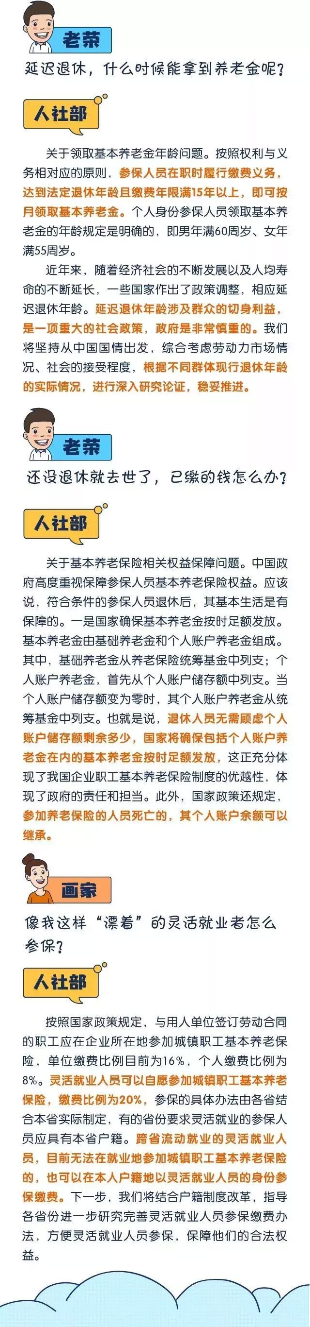 今日人社部针对大家关心的社保相关问题有了最新统一的回复,包括养老金能领多少?异地参保怎么办?灵活就业者怎么参保等等问题,通过下面一张图仁本带你好好了解!