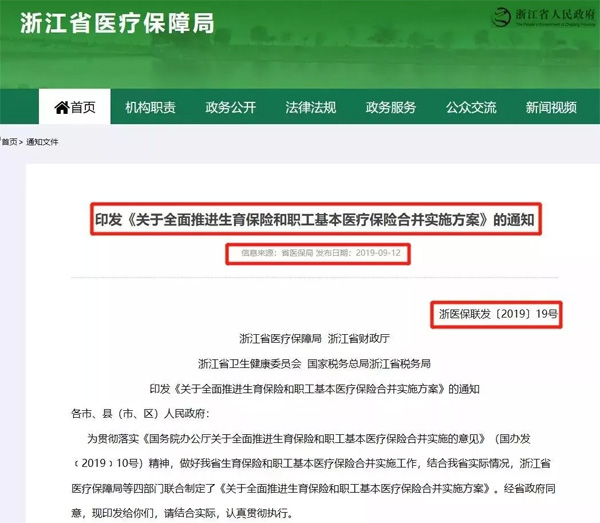 9月12日,浙江省医保局发布《关于全面推进生育保险和职工基本医疗保险合并实施方案》的通知,明确两险合并的具体实施方案。