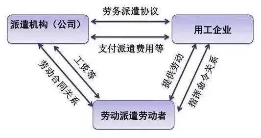 劳务派遣是指由派遣单位与派遣劳工订立劳动合同,由派遣劳工向要派企业给付劳务,劳动合同关系存在于派遣机构与派遣劳工之间,但劳动力给付的事实则发生于派遣劳工与要派企业之间。劳务派遣最显著特征就是劳动力的雇用和使用相分离。 劳务派遣的三方法律关系 1、劳务派遣单位与被派遣劳动者之间的关系 在劳务派遣用工形式下,劳动者与劳务派遣单位签订劳动合同,双方建立劳动关系。根据《劳动合同法》第五十八条“劳务派遣单位是本法所称用人单位,应履行用人单位对劳动者的义务。” 该条款明确了劳务派遣单位的雇主需承担支付劳动者的工资报酬、社会保险等责任。但这种劳动关系有别于正常的劳动关系,劳务派遣单位并不实际使用劳动者,而是将其派遣至实际用工企业从事劳动。 2、劳务派遣单位和实际用工企业之间的关系 在劳务派遣中,派遣单位与用工企业签订劳务派遣合同,约定双方的权利义务,在合同中,派遣单位承担的义务主要是把符合用工单位要求的合格劳动者提供给用工单位,用工单位承担的义务主要是向派遣单位支付服务费用,该协议符合民事合同的基本特征,双方之间建立的是民事法律关系中的民事合同关系。 通过该种形式,用工企业将用工责任部分转嫁给劳务派遣单位,通过设置差异化薪酬福利制度,达到降低用工成本的目的。