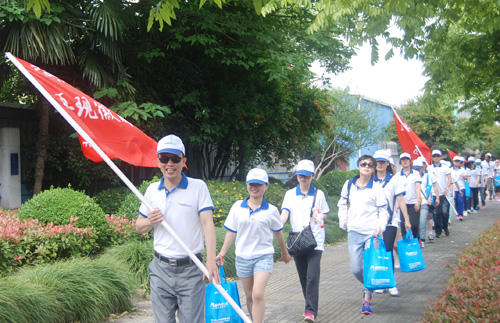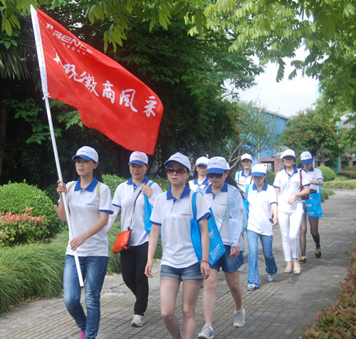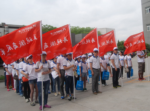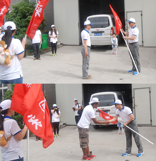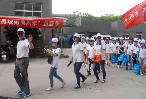 各战斗小组宣誓 “一、二、三、四、五…..”列队报数,整理服装,动员、宣誓、授旗……这不是部队行动,而是杭州仁本人力资源有限公司开展的“再现徽商风采,引领大学生创业”越野拓展活动的开幕式。 一切按军事化要求,包括集合时间,清点人数,立正看齐、精神面貌、科目内容、纪律要求,目标任务。 越野拓展活动分为5个战斗小组,每个小组十名,其中包括十所大学的大学生代表,在大学生代表中,还有5名外国留学生代表,他们分别来自于马达加斯加、法国、哈萨克斯坦、吉尔吉斯。 总经理向联合为队伍做了简短的战前动员,并分别为5个战斗小组授旗。