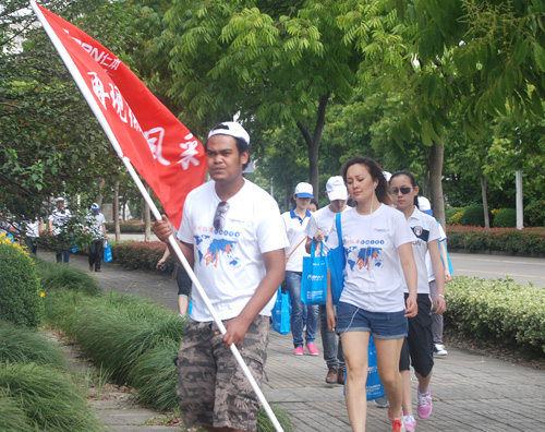 蒙眼传信息项目---突破沟通限制 在“保丽大草坪”上,成了这次拓展的训练场,当活动结束之后,没有留下任何垃圾,显然这也是考验参加拓展活动的成员的环保意识,包括队伍在行进中有没有违反交通信号灯的“交通安全意识”。 活动接近尾。李双全副总宣传奖项时,把活动推向了高潮。 最佳团队奖的奖励是第一战斗小组,荣获:一天的公司大厅及两个走廊的环境卫生的奖励;最佳协作奖的奖励是第三战斗组。荣获:为所有的办公室提开水一天奖励;最佳效率奖的奖励是第四战斗组,荣获:一天开水房和洗漱间的卫生奖励;最佳爱心奖的奖励是第二战斗小组,荣获:大会议室及所有小会议室卫生奖励; 最佳创新奖,是大学生战斗小组,他们的奖励是由来自马达加斯加的留学生代表罗一克现场为大家表演一个节目的奖励!