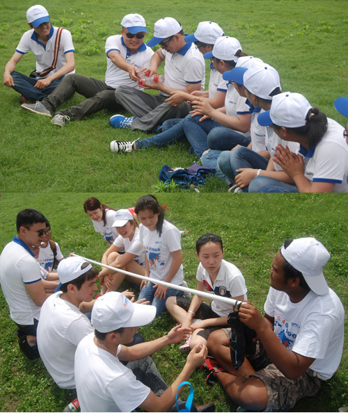 第一小组率先到达目的地 到达目的地后,开始了拓展项目的训练,无论是为了检验效率提高还是考验团队协作精神,大家都充分发挥聪明才智,出色地完成目标任务。 在效率提高环节,组织者要求各队将三只矿泉水瓶子来回传递在10秒之内完成时,一些人认为是不可能的。但是通过第一轮的拓展,用了12秒。各小组们开始的研究分析,如何提高效率,拿出了具体的实施手段和方案,结果最快的以5秒2出色地完成了任务。通过拓展,每一位选手明白,任何时候不要低估自己的能力,不要首先为自己的工作和学习找借口,怀疑自己的能力,要以积极的态度面对问题;看似不能实现的目标,在团队智慧的合作上能非常出色的完成。工作效率往往就是实践中不断总结、修正、寻找智慧而得到提高的。