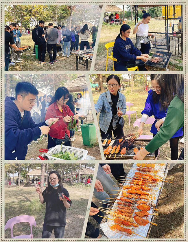 中午时分,小伙伴们尽兴归来,烧烤派对正式开场!杭州仁本小伙伴们聚在一起,有的生火,有的串串,有的烤制,有的撒粉,合作相当默契!大家一边享受自己烤制的美食,一边聊着生活和工作中的趣事,还有“麦霸”同事为我们献上一首首好听的歌曲。