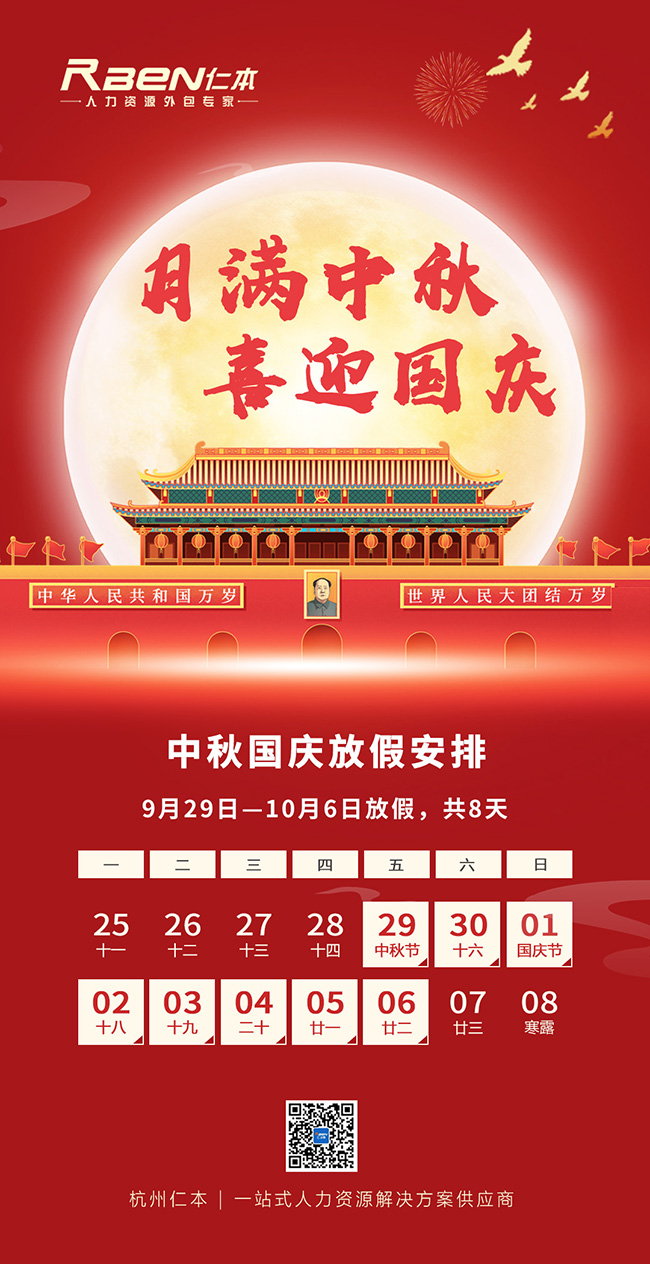 杭州仁本2023年中秋国庆放假通知: