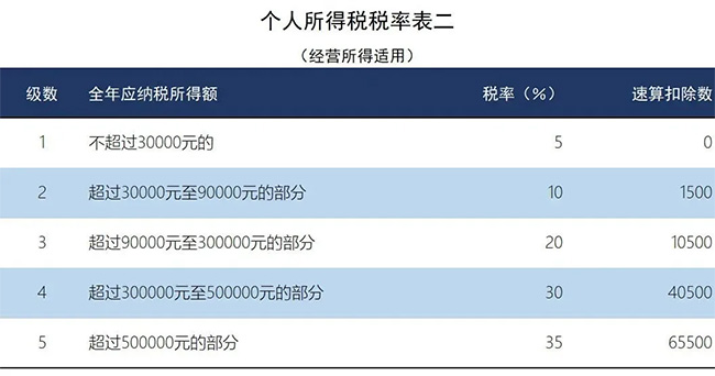 非居民个人的工资、薪金所得,以每月收入额减除费用五千元后的余额为应纳税所得额;劳务报酬所得、稿酬所得、特许权使用费所得,以每次收入额为应纳税所得额。 劳务报酬所得、稿酬所得、特许权使用费所得以收入减除百分之二十的费用后的余额为收入额;其中,稿酬所得的收入额减按百分之七十计算。 5、经营所得税率表