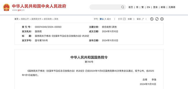 重磅消息来啦!国务院决定对《全国年节及纪念日放假办法》作出修改,2025年起,法定节假日增加2天!