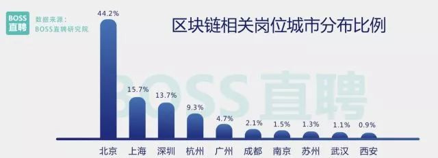 目前,区块链相关岗位的发布地区分布高度集中,北上杭深占比超8成。