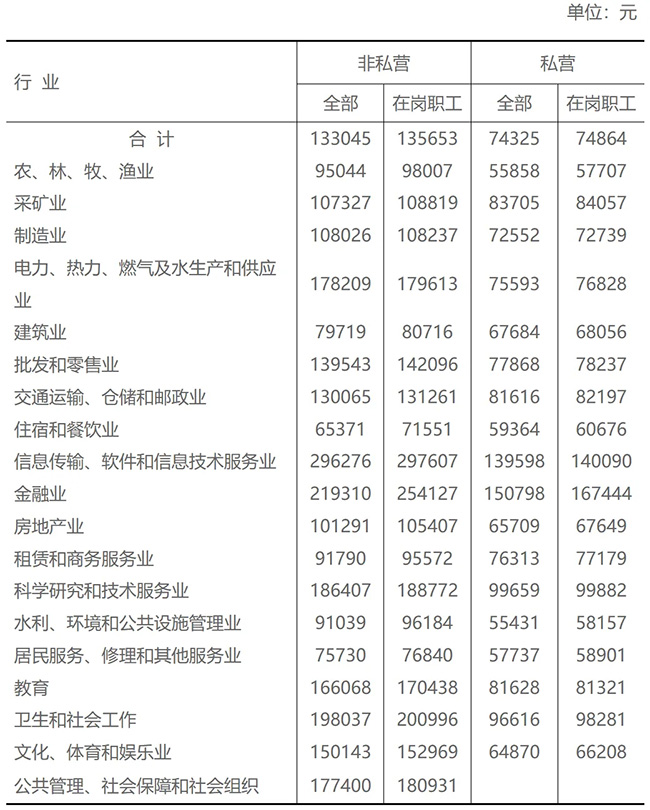 近日,2023年浙江省单位就业人员年平均工资出炉来看看哪些行业最赚钱? 1、2023年浙江省单位就业人员年平均工资