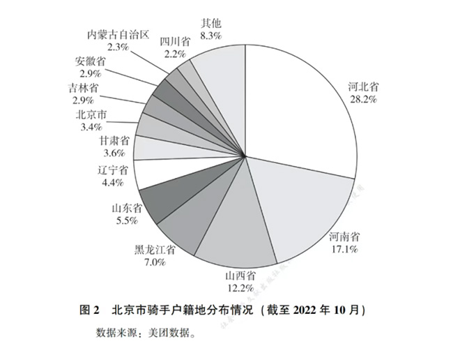 图源:《北京社会发展报告(2022~2023)》过去40多年来,我国完成了从“乡土中国”到“城乡中国”的巨大跨越,形成全球规模最为庞大的人口大迁徙现象,大量流动人口以“劳动力红利”撑起了城市的飞速发展。 在北上广深的街头,你能听到骑手们天南海北的口音。只要付出汗水,就能拿到不亚于蓝领工人的收入,但遗憾的是,很多人最终还是要回到老家养老。