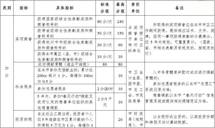 加分指标充分考虑了奖项荣誉、社会服务、投资纳税、科技创新等,通过加分引导社会创造良好氛围。