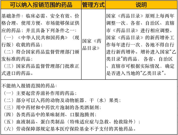 参保人可报销的药品范围一览表