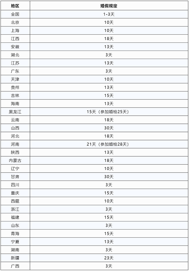 婚假,是国家给予劳动者本人结婚依法享受的假期。 随着各地计划与生育条例的修改,不少省份都不同程度延长了婚假的时间,但是仍有部分省份的婚假只有3天。 对于婚假是否延长的问题,近期多地卫健委都已明确回复。 1、婚假延长,官方明确了 近期,浙江省卫健委答复省十四届人大一次会议高文庆代表《关于抓紧完善生育保障和激励措施的建议》称,通过全省上下共同努力,目前生育支持政策体系架构初步建立并开始产生良好政策效应,浙江省出生人口“失速下滑”的态势得到一定程度缓解。 浙江省卫健委已于6月15日答复表示,我们也清醒地看到,人口发展形势依然非常严峻,生育支持政策供需存在不平衡,还无法真正破解“不想生、不愿生、生不起、养不起”等问题,亟待凝聚合力构建生育友好型社会。 并且明确了浙江省卫健委将会同省级有关部门持续推进以下几方面工作: 一是督促指导各县(市、区)在年内因地制宜出台支持生育的干货实货类政策措施,协调省级相关部门继续出台深化细化配套支持政策,切实优化条抓块统、协同发力的生育友好的政策体系。 二是加大力度持续协调推动出台各类配套支持政策,包括生育保险、医保报销、长幼随学、住房保障、税收补贴等专项性政策,以及托幼一体化管理、生育假期成本分担、妇女就业保障等综合性政策,力争年内联合省级部门印发《关于加快落实和完善积极生育支持措施的若干意见(暂定名)》并推进落实。 三是在保障基本、量力而行的前提下,推进普惠托育和学前教育、义务教育基本公共服务体系建设,加快研究建立生育支持社会共担机制进度。 四是倡导适龄婚育、优生优育,推行简约文明婚俗,推进新型婚育文化建设,年内启动开展延长浙江省婚假天数方面的工作。 五是年内组织开展对全省各地各相关部门建立生育支持政策体系工作进展情况的调研评估,加大细化政策出台和落实力度,并探索开展对各设区市人口均衡发展状况评价工作。 也就是说,浙江省将会在2023年内正式启动延长婚假天数的工作!